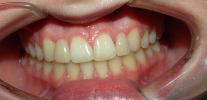 La foto sotto mostra come la malocclusione può impedire l'igiene dentale:
