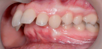 - Nell'area dei denti posteriori ci sono contatti stretti, gli incisivi superiori anteriori si sovrappongono a quelli inferiori.