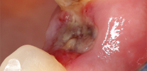 De um modo geral, se você escolher o menor dos dois males, seria mais seguro tratar a gengiva depois de retirar o dente com uma solução alcoólica a 1% de verde brilhante ("verde"), em contraste com uma solução alcoólica a 5% de iodo. O tratamento da mucosa oral com essas concentrações de iodo freqüentemente causa queimaduras graves, levando à erosão e úlceras.